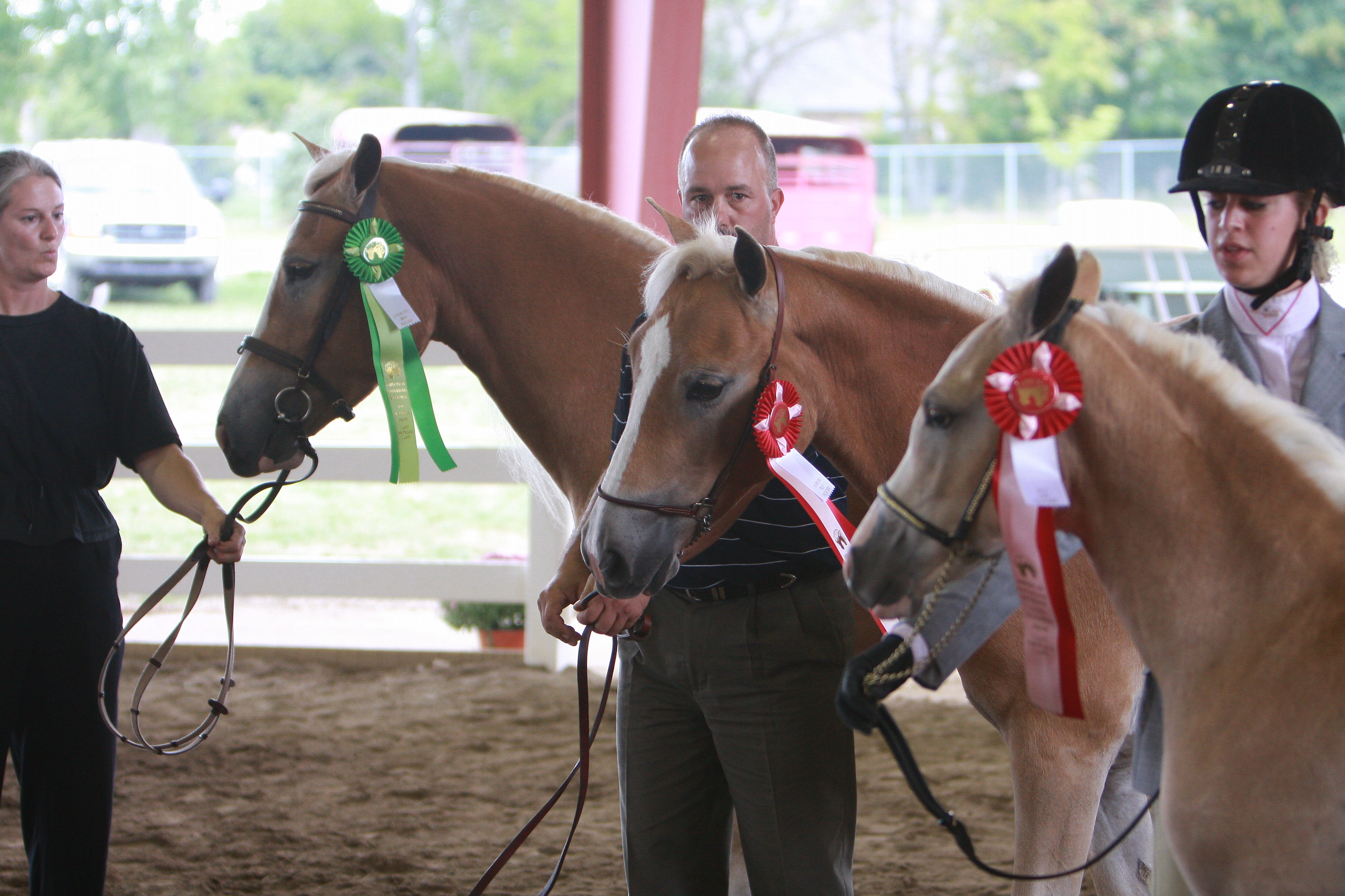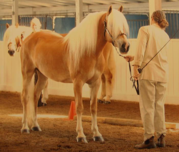AUGUST 2009: NEW HORIZONS HAFLINGERS HAVE A SUCCESSFUL DAY AT THE NEW YORK GOLD HAFLINGER CLASSIC! Romantique of Lilac Farms, Reahna of Lilac Farms, and Aufwiedersehen MLF (Vader) all win first place under judge Moshier in their respective halter classes! Teake and Reahna also took second place in their $100 classes! Rosina of New Horizons (pictured top right), a full sibling to Teake and Reahna owned by Dreamfield Manor Farm, placed third under both judges in a very competitive class as well!