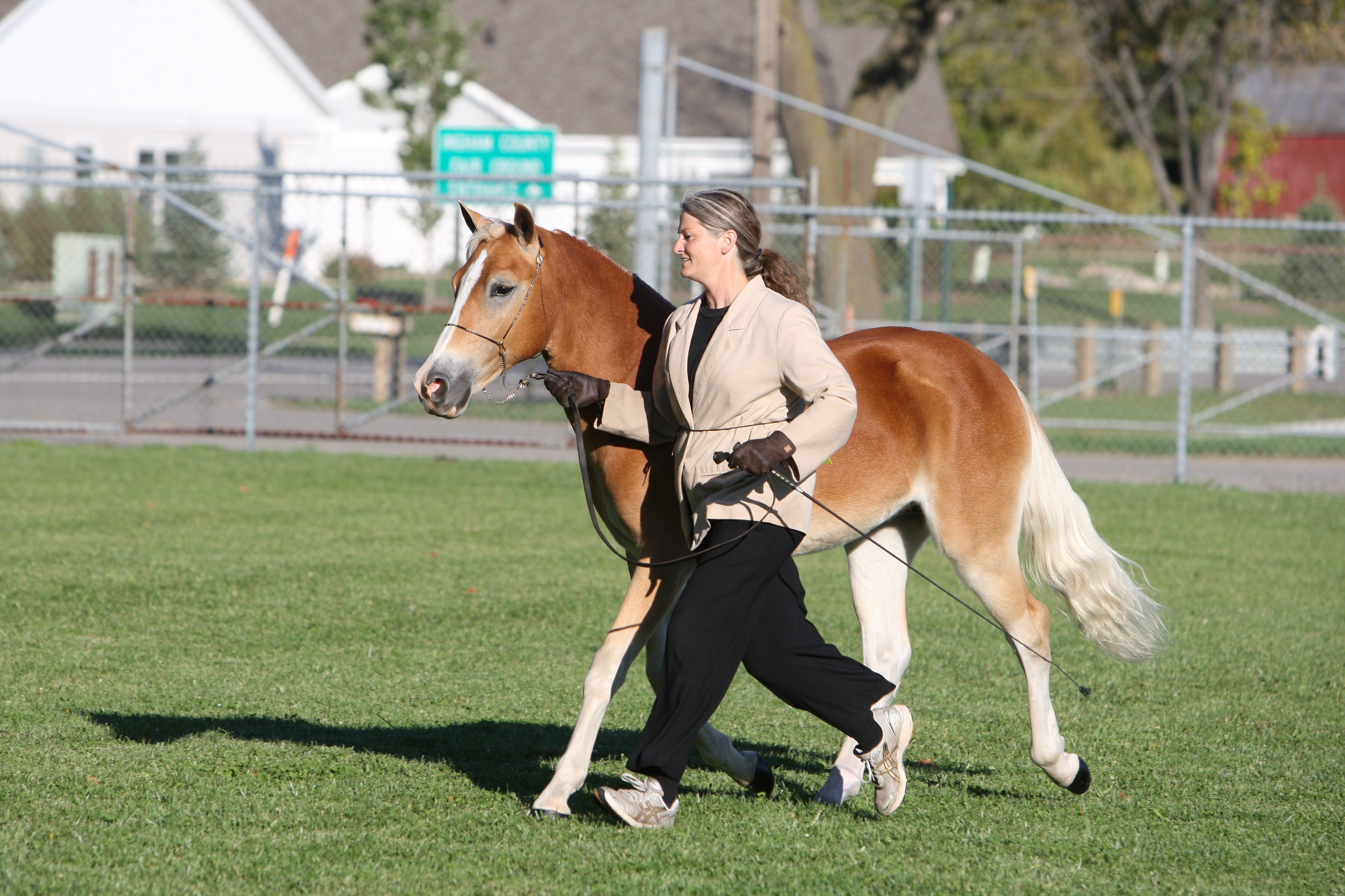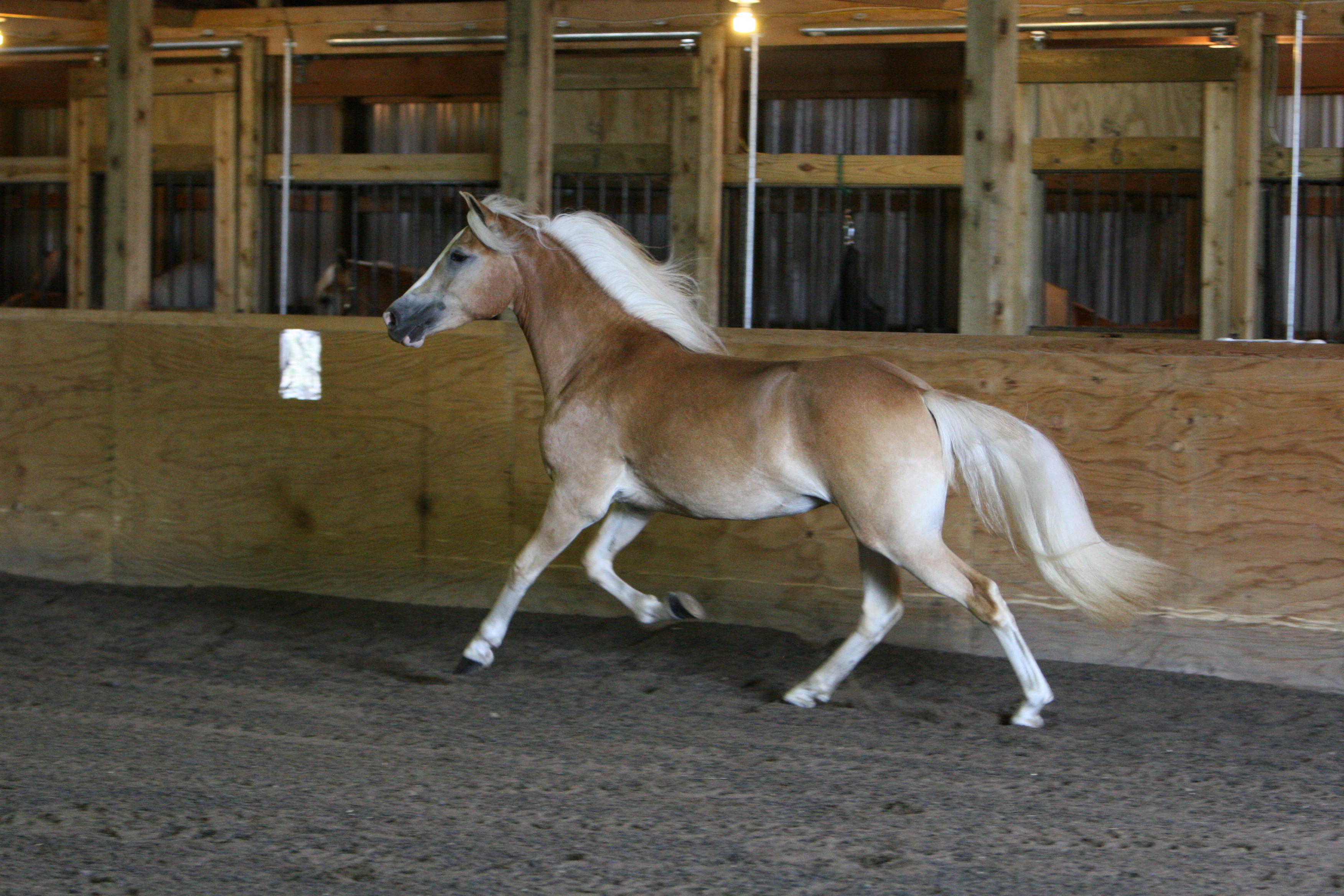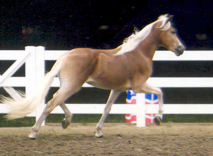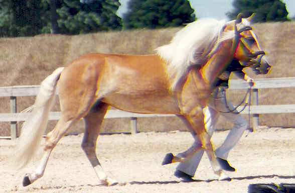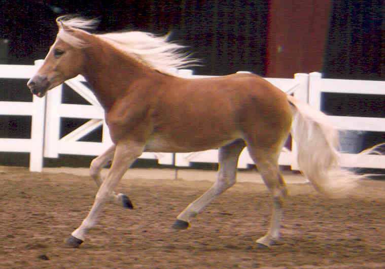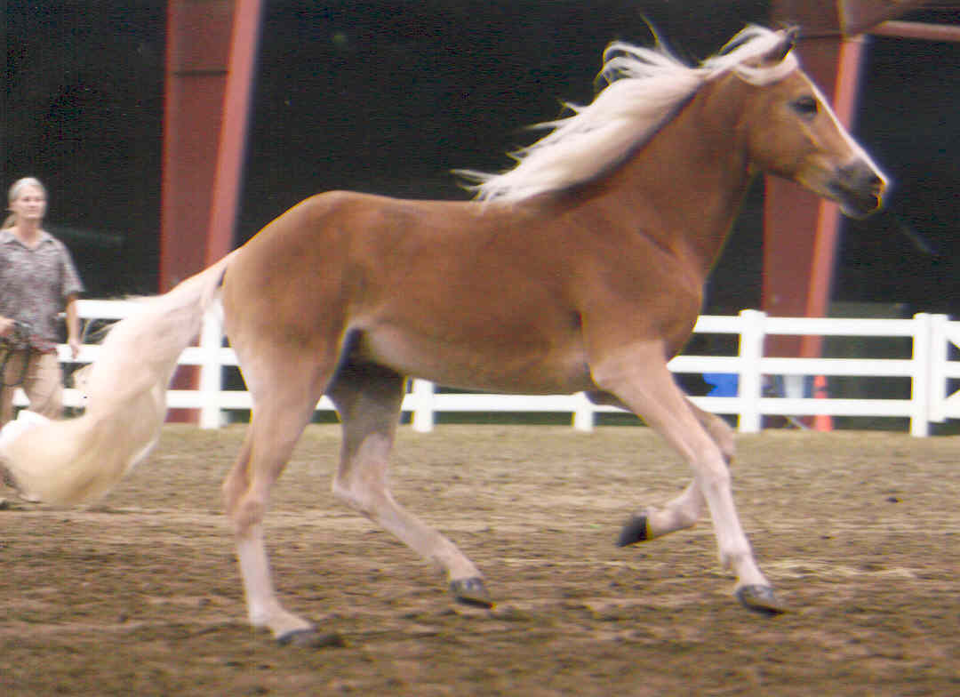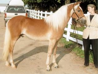 JULY 2010 UPDATE: ROSINA OF NEW HORIZONS WINS FIRST PLACE IN A VERY COMPETITIVE TWO-YEAR-OLD FILLY CLASS AT THE 2010 BUCKEYE HAFLINGER SHOW IN OHIO! We knew this spectacular filly was special when she was a foal, but she gets better and better with each passing year! At @58" and growing, Zeena is a fantastic example of what we are striving to produce in our breeding program! Zeena is very tall with long refined, clean-boned legs, excellent shoulder and hip angles and length of pastern, and a long beautifully-shaped neck set high on her shoulder, with a beautiful, refined Arab head. Add to that her outstanding movement, elegance, expression and wonderful personality and you have the total package!