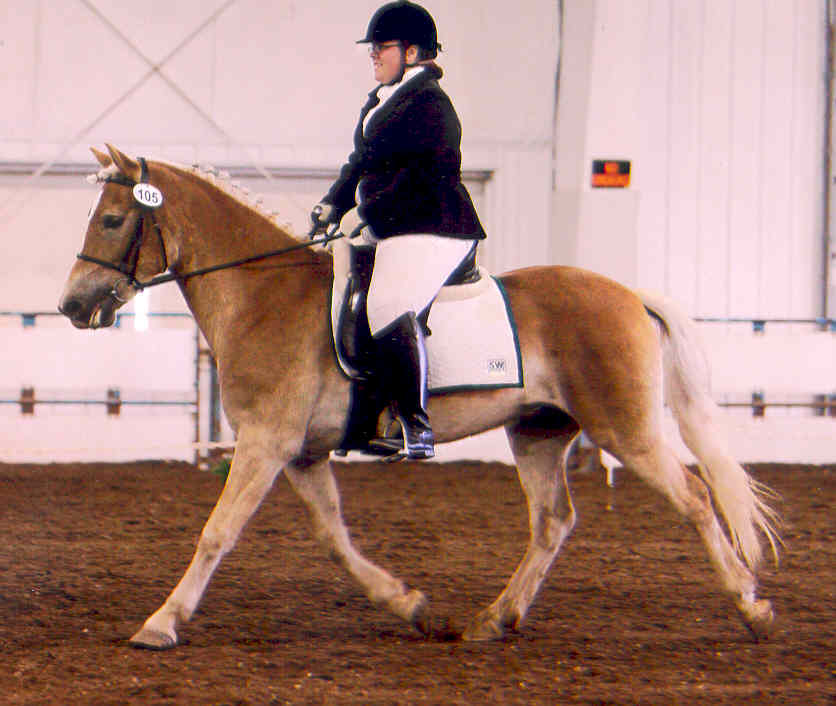 OCTOBER 2009: ROMANTIQUE OF LILAC FARMS HAS A SPECTACULAR SHOW SEASON IN HER FIRST YEAR UNDER SADDLE! Romantique of Lilac Farms had an amazing year after only a few months under saddle! Shown walk trot in English pleasure, western pleasure and dressage, Teake placed consistently at the top of her class, with a first place and numerous second places at shows throughout the midwest and the East coast! Some of her placings include 1st place in western walk/jog at (KILE), 2nd place (out of 17) English Pleasure w/t (Buckeye Haflinger Show), 2nd place (out of 15) western pleasure w/t (Buckeye), 2nd place suitability for dressage w/t (Judge Gildein; New York Gold Haflinger Classic), 2nd place suitability for dressage w/t (KILE), and 2nd place--with a score of 75.5%--Intro dressage Test B (AHR National Show)!