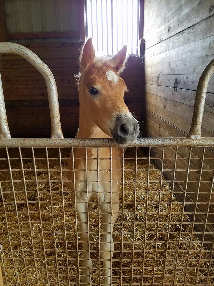 Mythical's 2018 foaling was bittersweet, as we lost her daughter, Myriam GHJ due to a dystocia that same evening. Mythical's foal born that night was a sweet, dark red filly who had a wonderful disposition right from the start. Mirracle Maja (yes, with two "r's") was truly a miracle for her new owner, who purchased the filly option inutero. This brave little filly is not afraid of anything! She quickly bonded with her older "sisters" when she joined the mare and foal group, and let them know that she wasn't a pushover!