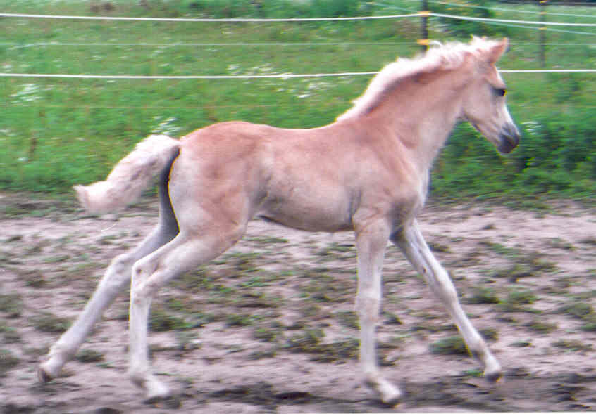 Arno van het Nieshof x R Noble Rose APF. This amazing filly has it all! The best yet of our three full sisters from this cross, Zeena combines elegance and grace with a presence that you don't often see in such a young foal!